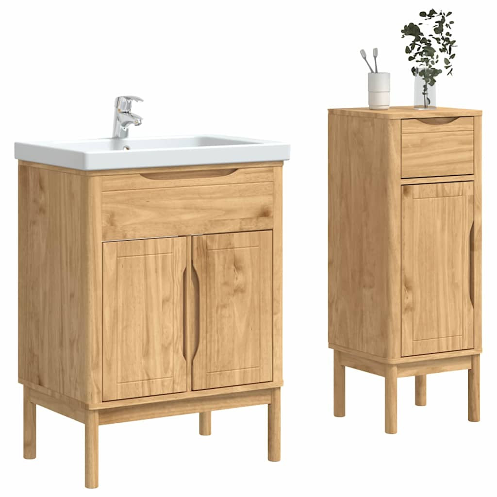 Fürdőszoba bútor szett fiókkal 2 pcs Faggyú barna Tömör fenyőfa
