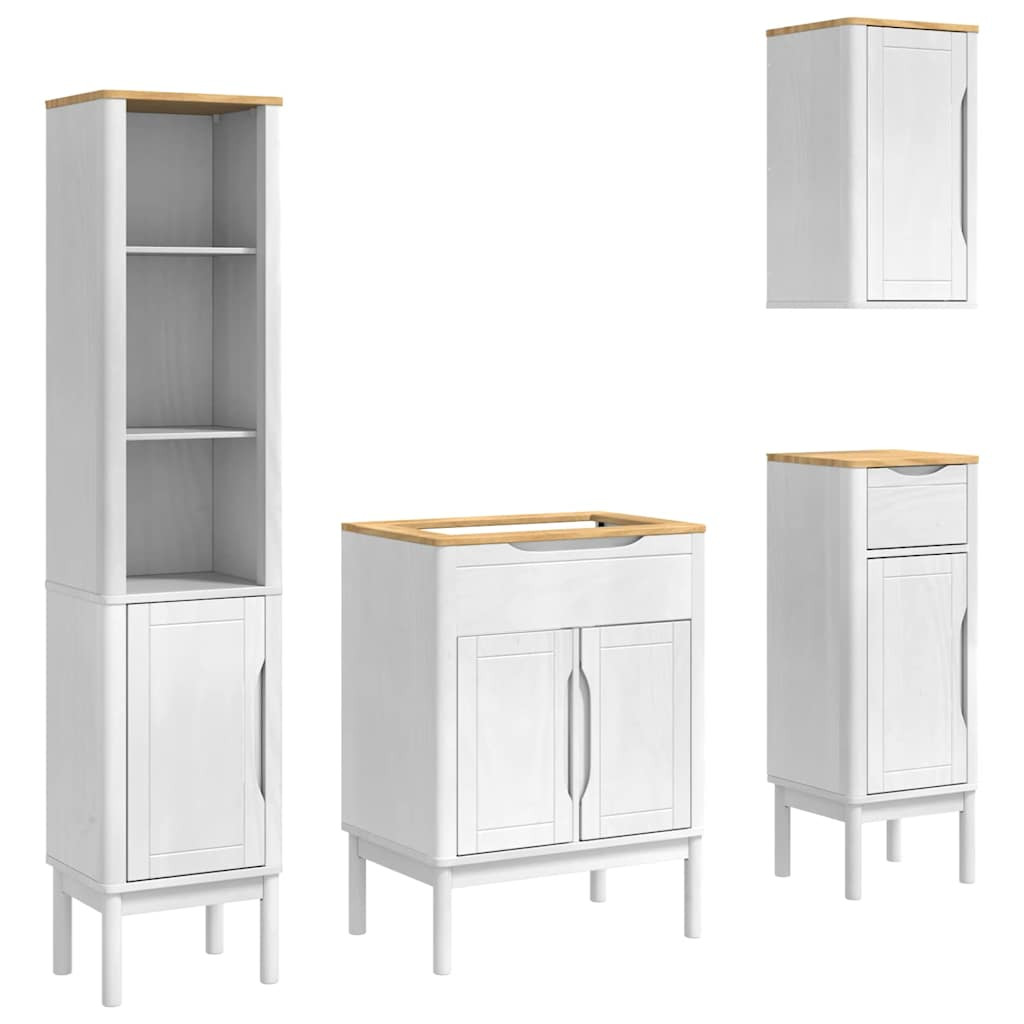 Fürdőszoba bútor szett fiókkal 4 pcs Fehér Tömör fenyőfa