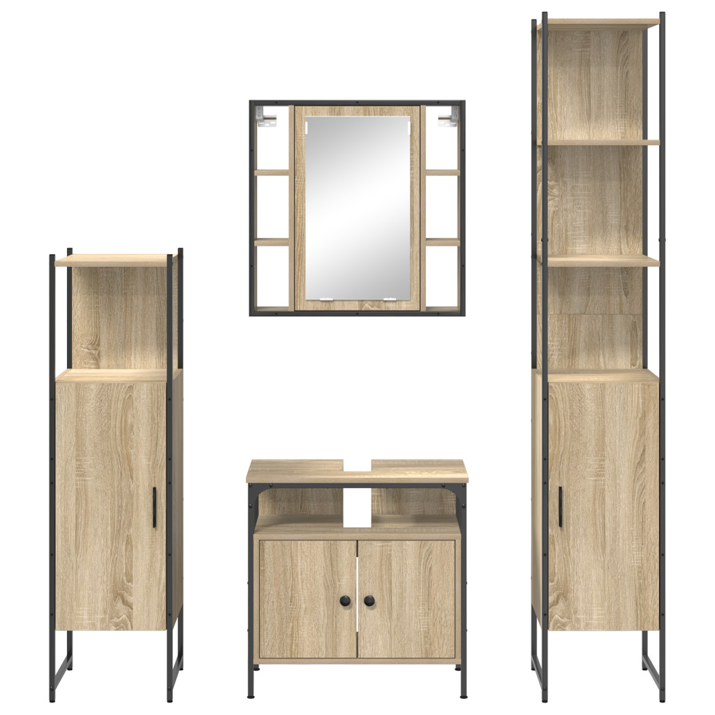 Fürdőszoba bútor szett polcokkal Falra szerelhető Egyéb tárolóval ajtóval tükörrel 4 pcs sonoma tölgy