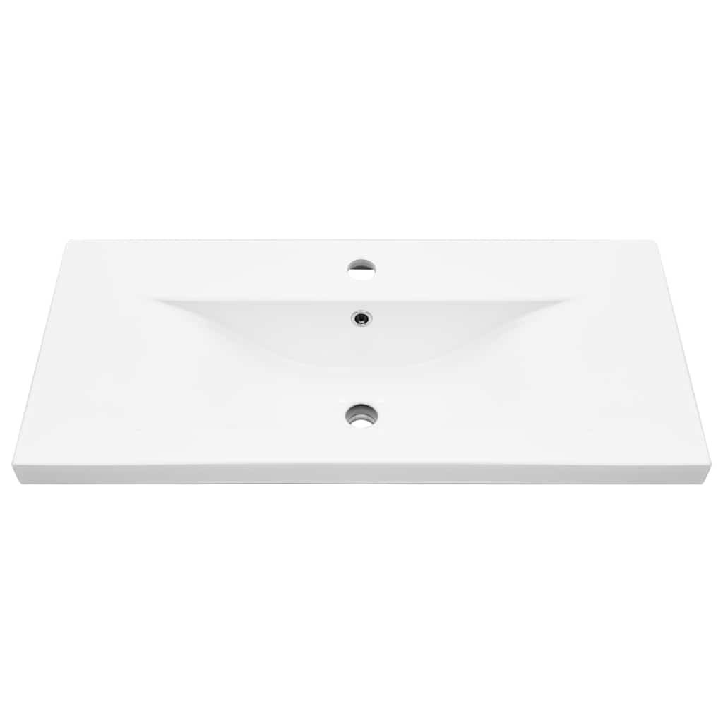 Ez a fürdőszobai bútorszett, mely egy mosdószekrényből, egy beépített, csapteleppel ellátott mosdókagylóból és egy tükörből áll, elegáns és kortalan kiegészítője lesz bármely fürdőszobának vagy illemhelynek. Stabil és tartós anyag: A szerelt fa tartós és stabil anyag sima felülettel, amely ellenáll a nedvességnek, a vetemedésnek és a hasadásnak, így megbízható választás különféle célokhoz.Bőséges tárolóhely: A mosdószekrény fiókkal rendelkezik, amely bőséges tárolóhelyet kínál a fürdőszobában található tárgyak tárolására.Falra szerelhető funkció: Ez a mosdószekrény a falra szerelhető, hogy további tárolóhelyet biztosítson. Ezáltal maximalizálhatja a padlóterületet, és tisztán tarthatja a környezetét.Túlfolyófunkció: Túlfolyóval is rendelkezik, hogy kifolyjon a víz, ha a mosdó túlságosan megtelik.Könnyen karbantartható: A fürdőszobabútor sima felületének köszönhetően könnyen tisztítható nedves ruhával, és kevesebb karbantartást igényel. Jó tudni:A falon belüli csavar(ok) és dugó(k) nem alaptartozékok. Keressen és használjon a falának megfelelő csavar(oka)t és dugó(ka)t. Ha bizonytalan, kérje szakember tanácsát. Gondosan olvassa el és kövesse a használati utasítás minden lépését.A csaptelep egy hideg-meleg vízcsap, és ha meleg vízre van szüksége, akkor vízmelegítőt kell csatlakoztatni. A gyermekeket felügyelni kell, hogy ne játszhassanak az eszközzel. Tartsd távol a gyermekeket a szerelési területtől. Figyelem: Olvasd el alaposan az utasításokat használat előtt, és tartsd meg későbbi hivatkozásra.