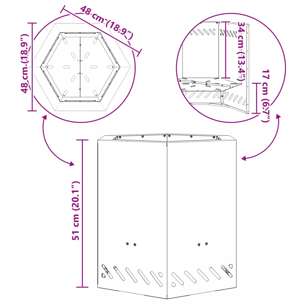 Ez a hatszögletű füstmentes tűzrakóhely igazi forradalom a kültéri bulikhoz, okos és praktikus tervezésével. Remek kempingtúrákhoz vagy lustálkodásokhoz a kertben, strapabíró hideg-hengert acélból készült, és az elegáns fekete matt kivitelével stílust adva melegen tart. Tartós tervezés: Kiváló minőségű hideg-hengert acélból készült, ez a tűzrakóhely minden időjárást elvisel, biztosítva, hogy sokáig kitart. Ideális kültéri szórakozáshoz. Hordozható jellemző: Nem túl nehéz, de elég stabil ahhoz, hogy a helyén maradjon, így könnyen viheted bárhová, ami nagyszerű piknikekhez vagy kempingezéshez. Rozsdamentes: Olyan anyagokból készült, amelyek nem rozsdásodnak, így a tűzrakóhely idővel is jól néz ki, biztosítva a nyugalmat minden kültéri kalandodhoz. Nyitott szellőzés: A tervezése lehetővé teszi a nagyszerű légáramlást, javítva a tüzelési folyamatot, és füstmentes hangulatot teremt a bulikhoz. Stílusos megjelenés: A hatszögletű forma és matt felület modern érintést ad, ami jól illik bármilyen kültéri díszítéshez, barátságos helyet teremt a tűz körül. FIGYELEM: Ne használjon szeszt vagy benzint a be- vagy újragyújtáshoz!