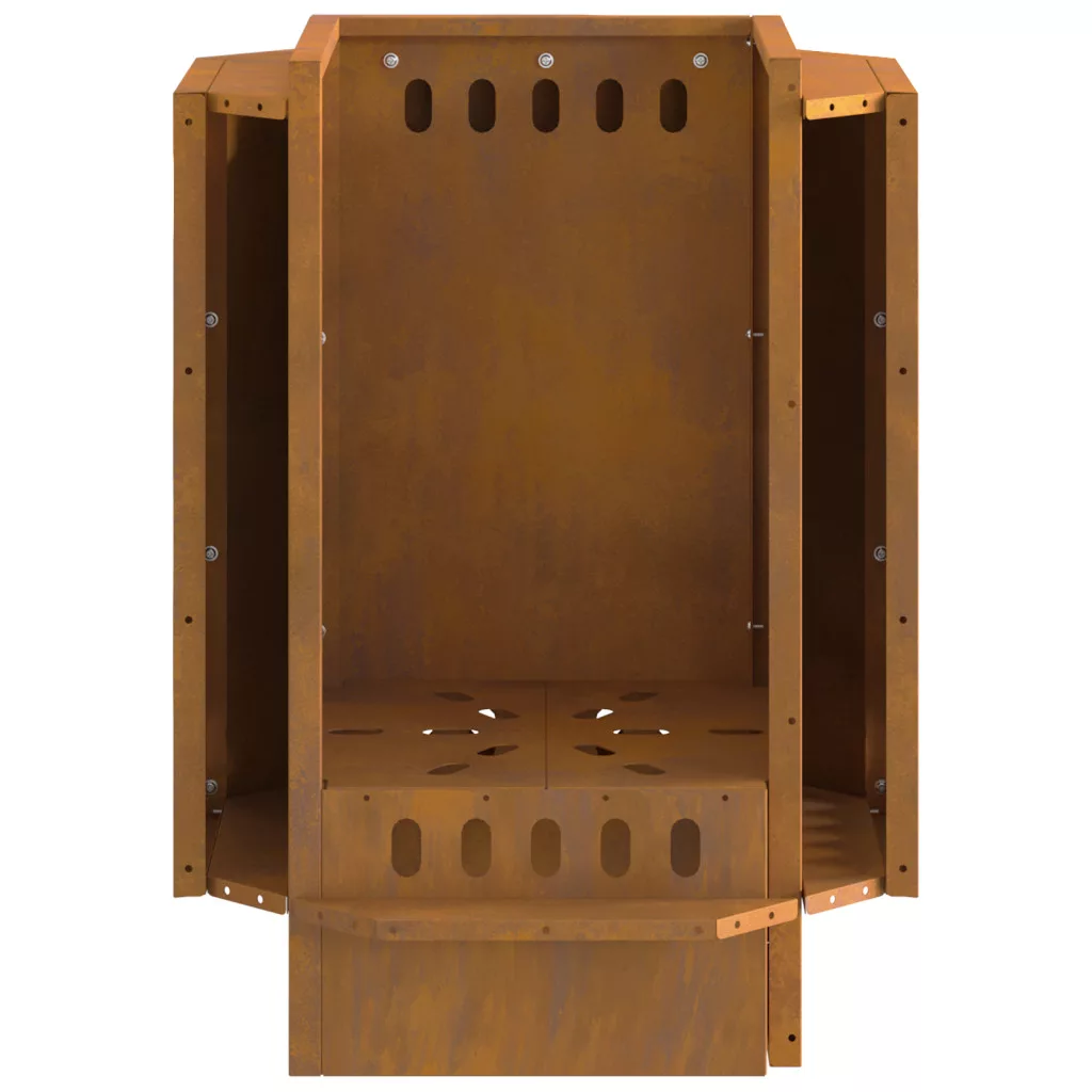 Ez a rusztikus, fatüzelésű tűzhely csak arra vár, hogy élvezd a tűz mellett eltöltött kényelmes estéket. Csodás rusztikus hangulatot teremt, ami remek helyként szolgál barátoknak és családnak a kertben, erkélyen vagy teraszon. Tartós kivitel: Ez a tűzhely erősen meg van építve, hogy bármilyen kültéri időjárásnak ellenálljon. Rozsdás acél felülete csodás rusztikus megjelenést kölcsönöz, ami a természethez illik. Hőálló anyag: Ez a fatüzeléses berendezés hőálló időjárásálló acélból készült, így élvezheted a meleget hosszú ideig anélkül, hogy aggódnod kellene. Jól teljesít hideg időben is. Rozsdaálló jellemzők: Rozsdamentes, így ez a tűzhely fenntartja a stílusát és a funkcióját az évek során, még esős időben is. Nem kell aggódnod, hogy elkopik a szabadban. Nagy fatömbök támogatása: Ez a tűzhely elbír nagy fatömböket, ami még jobban fokozza a kültéri hangulatot, elegendő meleget és helyet biztosítva ahhoz, hogy mindenki kényelmesen összegyűlhet. Hordozhatóság: Könnyű, könnyen mozgatható, ez a tűzhely bárhová magaddal viheted, ideális választás kempingezéshez vagy családi összejövetelekhez bármilyen kültéri helyszínen. FIGYELEM: Ne használjon szeszt vagy benzint a be- vagy újragyújtáshoz!