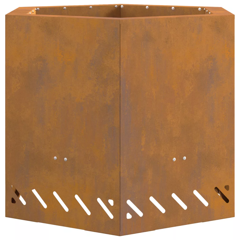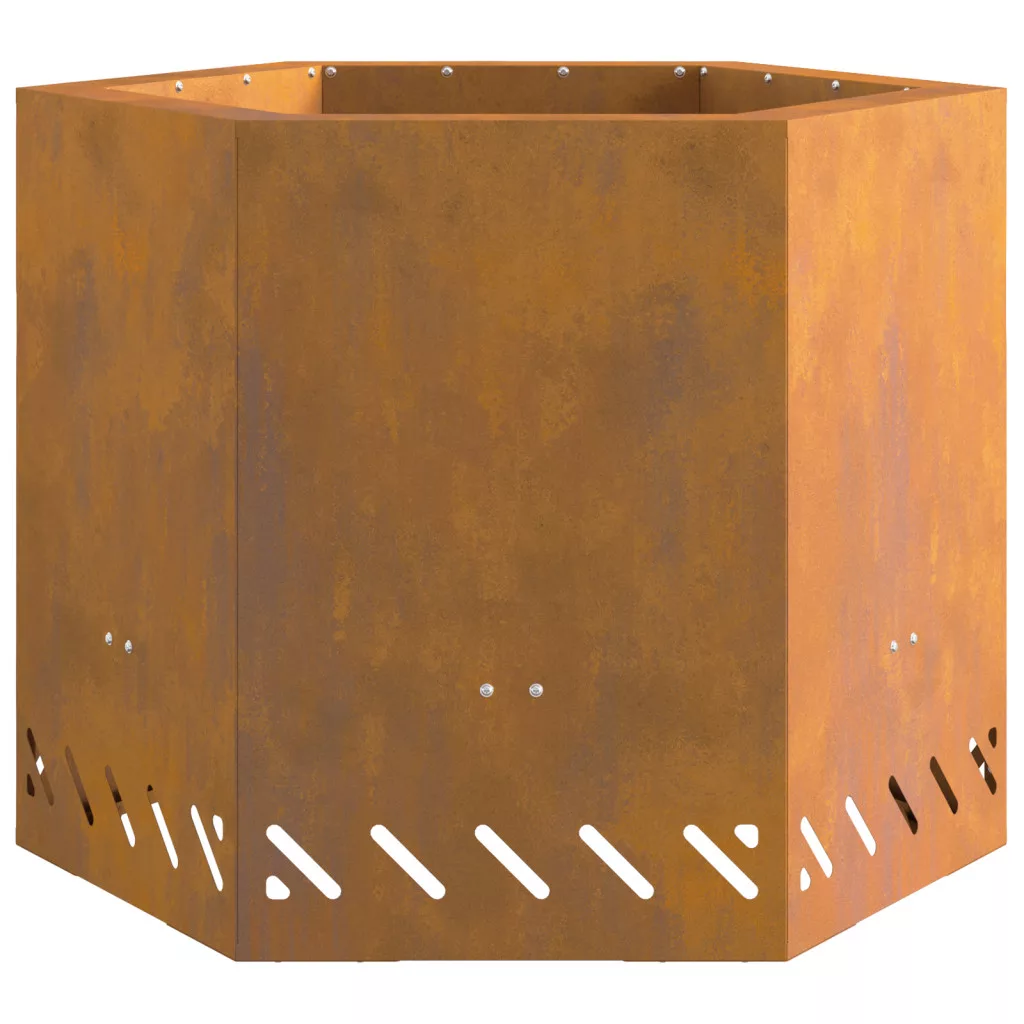Ez a Rusztikus Hatszögletű Tűzrakó meleget és jó hangulatot ad a kültéri találkozókhoz. Tökéletes hűvös estékre a barátokkal és családdal. Gyönyörű rusztikus kinézete és strapabíró időjárásálló acél szerkezete nemcsak jól néz ki, hanem ellenáll az időjárás viszontagságainak is, remek középpontot teremtve a teraszok és erkélyek számára. Ez a tűzrakó rozsdamentes anyagból készült, így a kültéri szórakozásod sokáig tart. Nagy fatáblák fogadására való, így kevesebb utánpótlással élvezheted a tüzet. Az időjárásálló acél durva külseje rusztikus bájt kölcsönöz, ami minden kültéri jelenethez vonzó. Tágas hatszögletű formája a társaságra invitál, barátok és család köré gyűjti őket. Ideális udvari grillezésekhez, kempingezésekhez vagy csak egy hűvös estét élvezni a csillagok alatt. FIGYELEM: Ne használjon szeszt vagy benzint a be- vagy újragyújtáshoz!