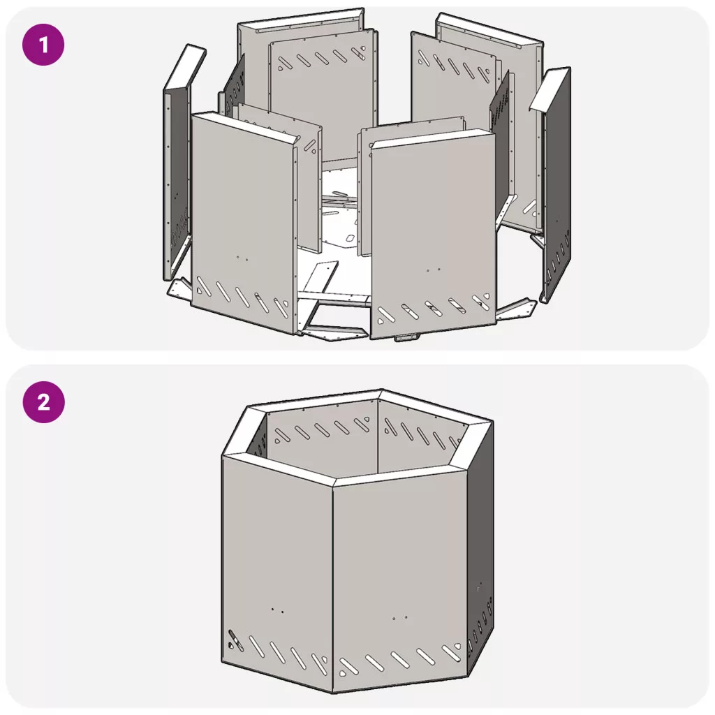 Ez a hatszögletű fátüzeléses tűzgyújtó a te kerted egy kellemes, meghitt helyévé varázsol, ahol mindenki jól érezheti magát. Egyedi megjelenésével és szilárd felépítésével nem csak fűt, hanem stílusos középpont is, ami feldobja a kültéri teredet. Tartós dizájn: Hideg hengerelt acélból készült, ez a tűzgyújtó porszórt felülettel rendelkezik, ami hosszú távú használatot biztosít, elég robusztus ahhoz, hogy bírja a megpróbáltatásokat. Élvezd az estéidet a tűz mellett anélkül, hogy aggódnod kellene az időjárás miatt. Rozsdaálló jellemzők: Az anyagok nemcsak erősek, hanem rozsdaállóak is, így szuper kültéri használatra. Ezért a tűzgyújtód jól fog kinézni és működni, függetlenül az időjárástól. Hordozhatóság: A tűzgyújtó könnyű dizájnja lehetővé teszi, hogy könnyedén mozgasd, így rugalmas a kültéri fűtéshez. Legyen szó kerti grillezésről vagy csillagos estékről, oda teheted, ahol a legjobban szükséged van rá. Tágas tűzkamra: A tűzkamra tágas, 53 x 53 x 41 cm-es, sok tuskót is elnyel a tartós tűzhöz, ami meleg és hívogató összejöveteleket teremt. Modern stílus: A hatszögletű forma és sima felület modern érzetet kelt, illeszkedve a különböző kültéri stílusokhoz, és kellemes légkört teremtve felnőtteknek és vendégeknek. Ez a modern megjelenés a funkcionalitással és a stílussal szépen ötvözi egymást. FIGYELEM: Ne használjon szeszt vagy benzint a be- vagy újragyújtáshoz!