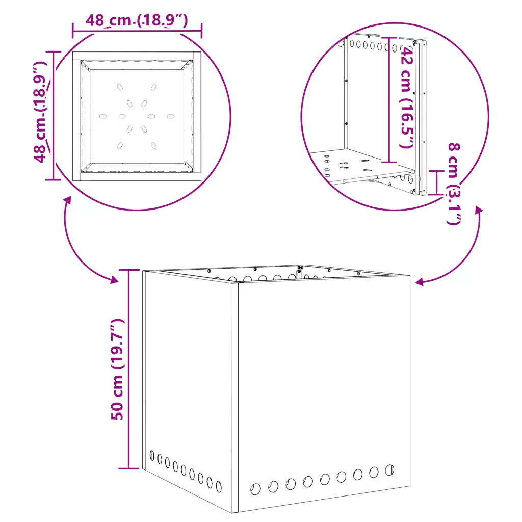 Füstmentes Tűzrakóhely Négyzet Fekete 48x48x50 cm Acél