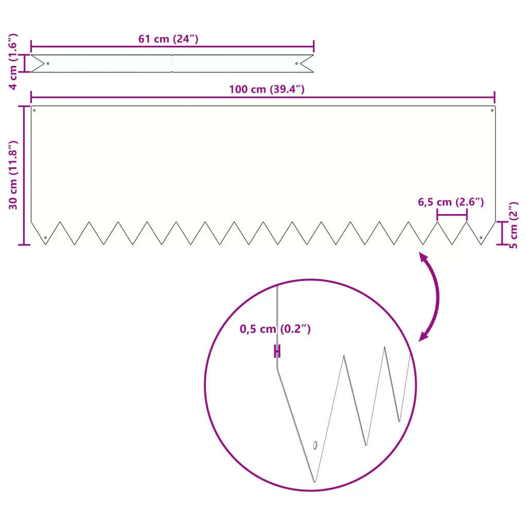 100 x 0.5 x 30 cm
