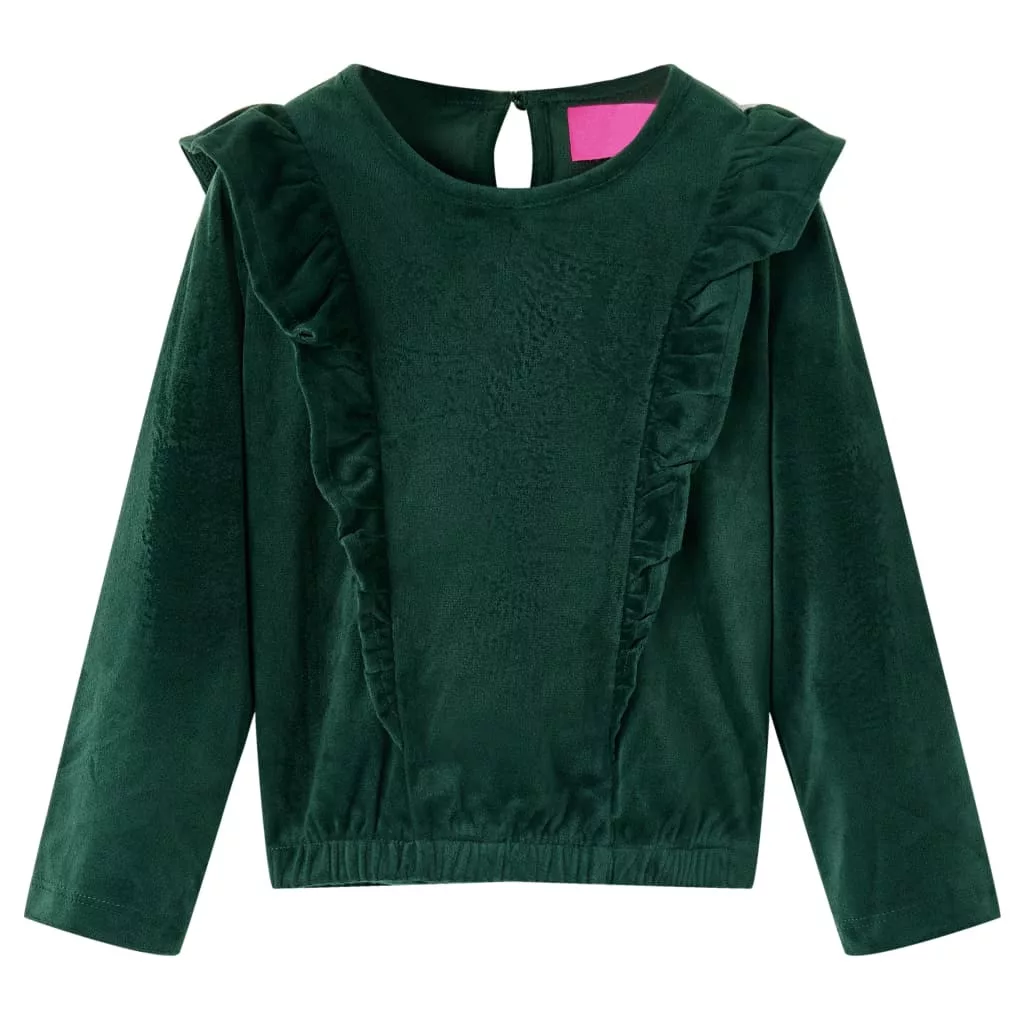 Gyerek blúz fodros fodrokkal Sötétzöld 104
