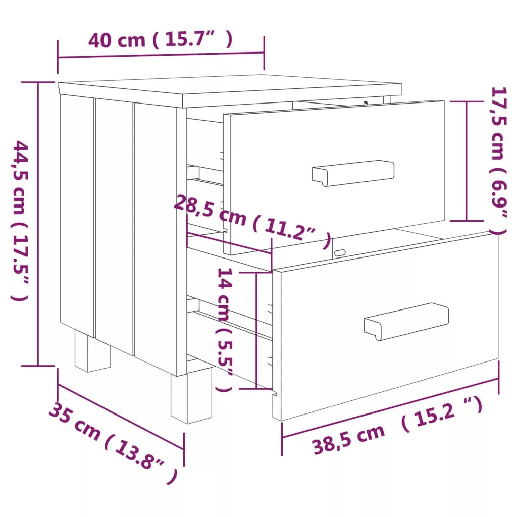 Ezek a fából készült éjjeliszekrények otthona dekoratív és praktikus kiegészítői lesznek. Az éjjeliszekrény tömör fenyőfából készült, így stabil és masszív. Az éjjeliszekrény két könnyen kihúzható fiókkal rendelkezik, amelyek bőséges tárolóhelyet biztosítanak folyóiratai, könyvei, távirányítói és egyéb apró tárgyai rendezett és könnyen elérhető helyen tartásához. Ezenkívül a masszív asztallap tökéletes dekorációs tárgyak megjelenítésére.