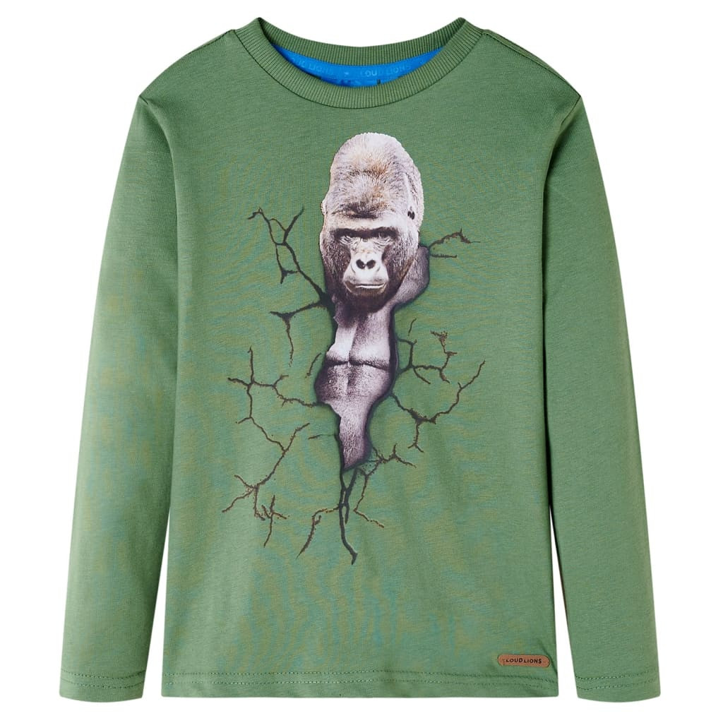Gyerekruha-kínálatunk a megfizethető, kiváló minőségű és tartós mindennapi viseletet képviseli 1,5 és 10 év közötti gyermekek számára. Kínálatunkban kabátok, pulóverek, ingek és még sok más található változatos stílusban, méretben és színben. A piac magas minőségi színvonalát követve kiváló minőségű anyagokat és fejlett gyártási technikákat alkalmazunk. Ez a gyerek póló hosszú ujjú, kerek nyakkivágással és egyenes modellel rendelkezik. Ezen a világos khaki színű pólón egy nagy gorilla látható. A hosszú ujjú gyermekpóló 100% pamutból készült, hogy puha és kényelmes tapintású legyen. Fontos: A képen látható mérettáblázat az 1,5-10 éves gyermekek méretét ábrázolja, lefedi a magasságot, a mellkast, a derekat és a csípőt. Könnyedén megtalálhatja gyermeke számára a megfelelő méretet.
