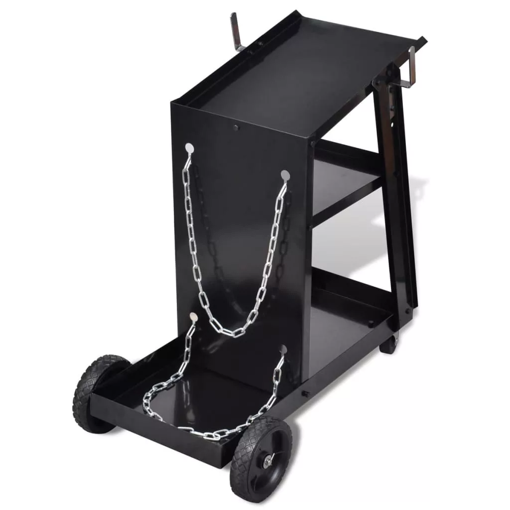 Ez a hegesztési acélszerkezet robusztus. Közremüködik 3 feketére festett polc, egy ideális választás folytatni a munkaeszköz üzleteket eszközöket, mint a MIG hegesztő, inverter, és hegesztési tartozékok.A Hegesztő kocsi büszkélkedhet, maximális terhelhetősége 40 kg. A ferde felső polcon ad jobb ellenőrzést, és a másik 2 tágas polcon kínál bőséges tároló helyiséget. A két hátsó fix kerekek és két első forgatható görgők biztosítják sima irányíthatóságot.Köszönhetően az erős váznak lakkozott kivitelben, ez tartós.
