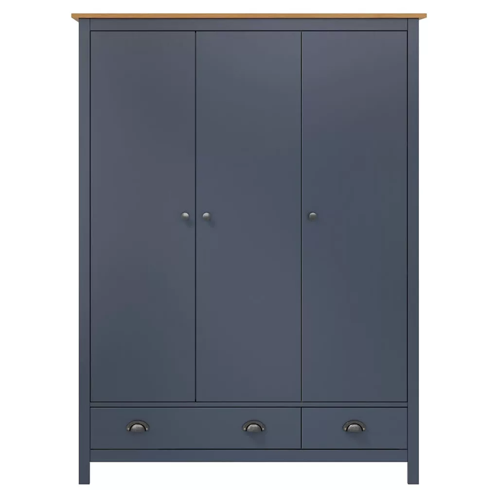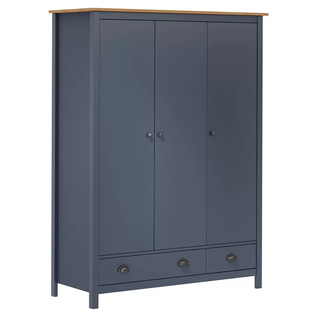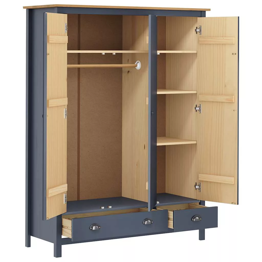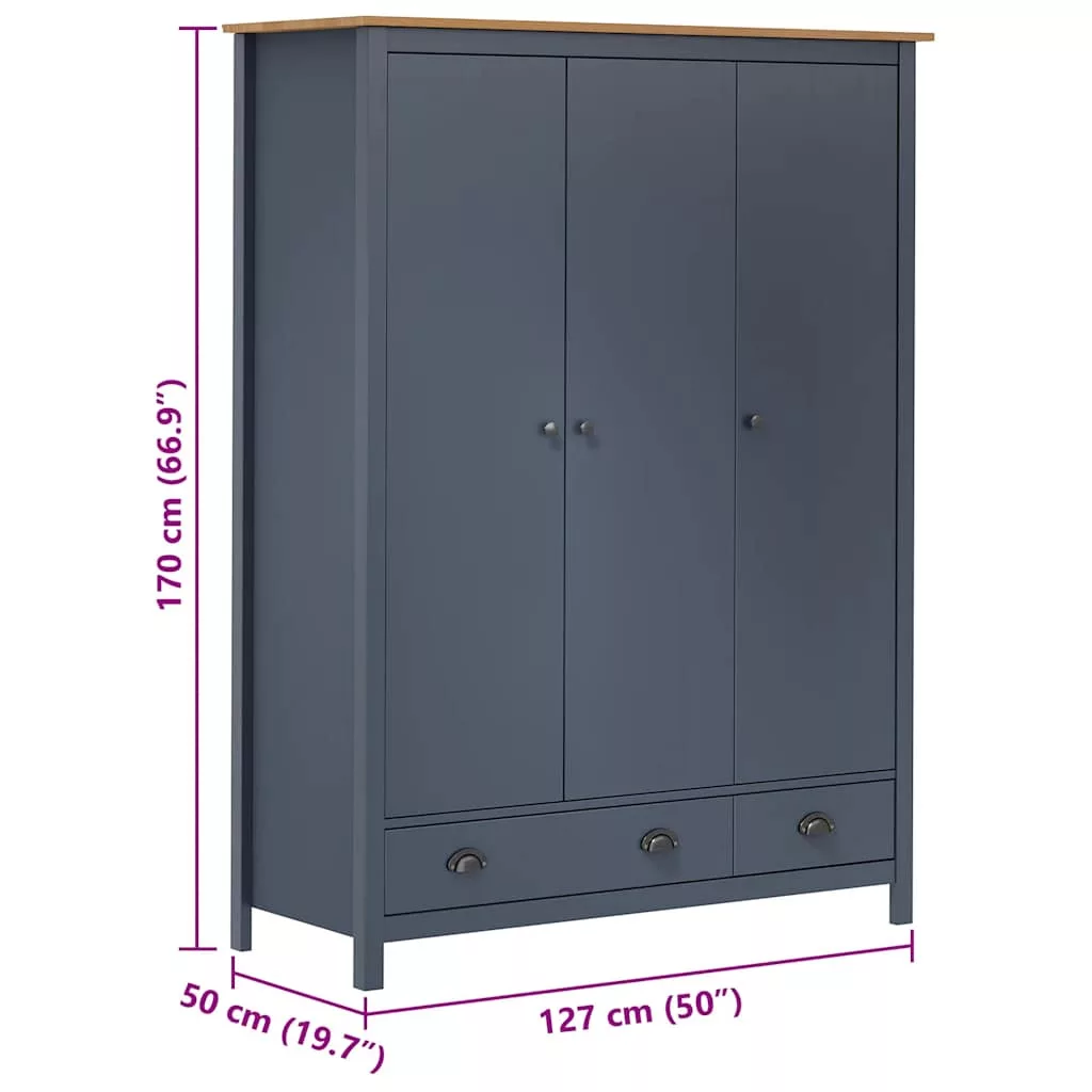 Hill szürke 3 ajtós tömör fenyőfa ruhásszekrény 127x50x170 cm