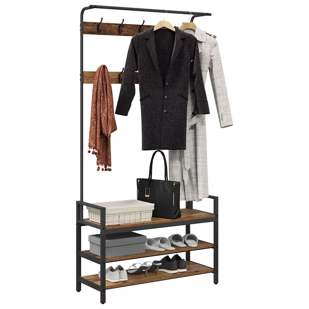 Kabáthorog polcokkal tárolóval Öreg fa 95 x 34 x 184 cm Faanyag