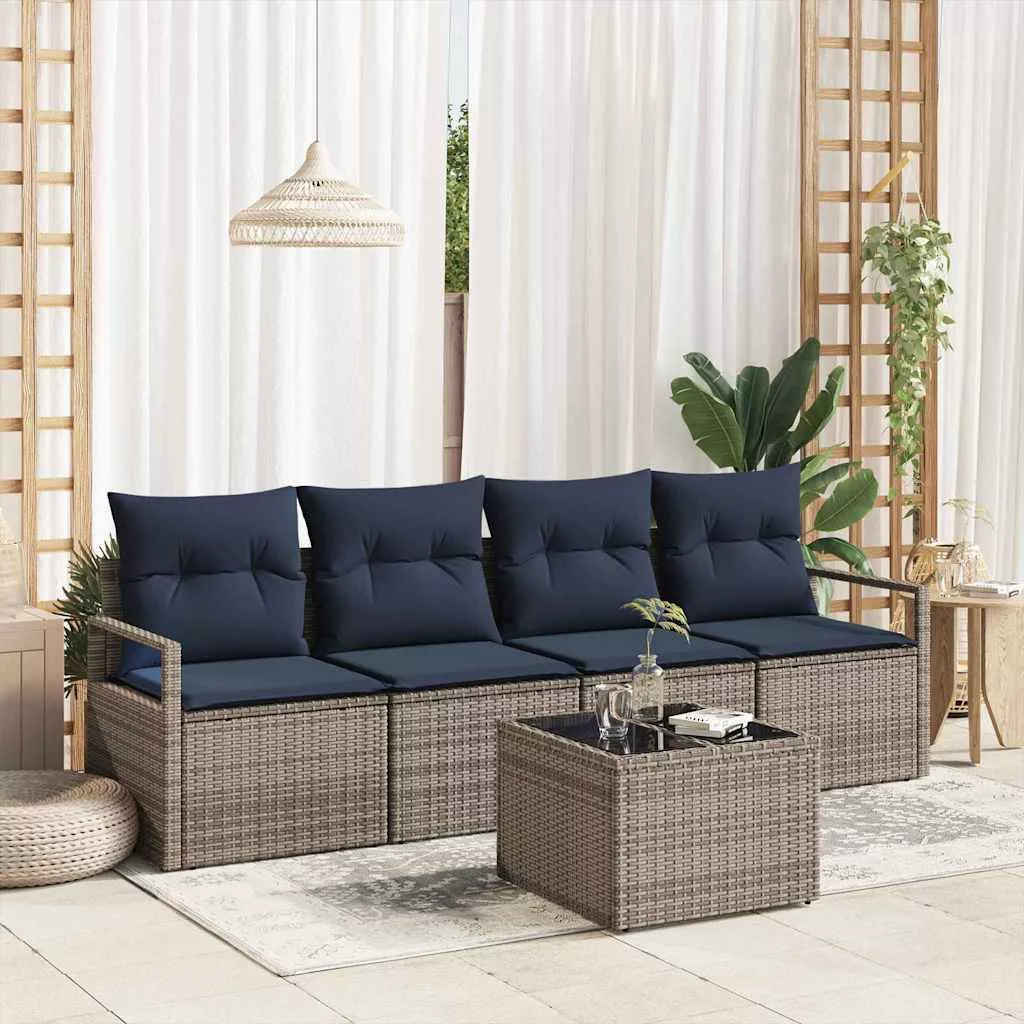 Kanapé Szett 5 pcs Szürke és Kék polirattan