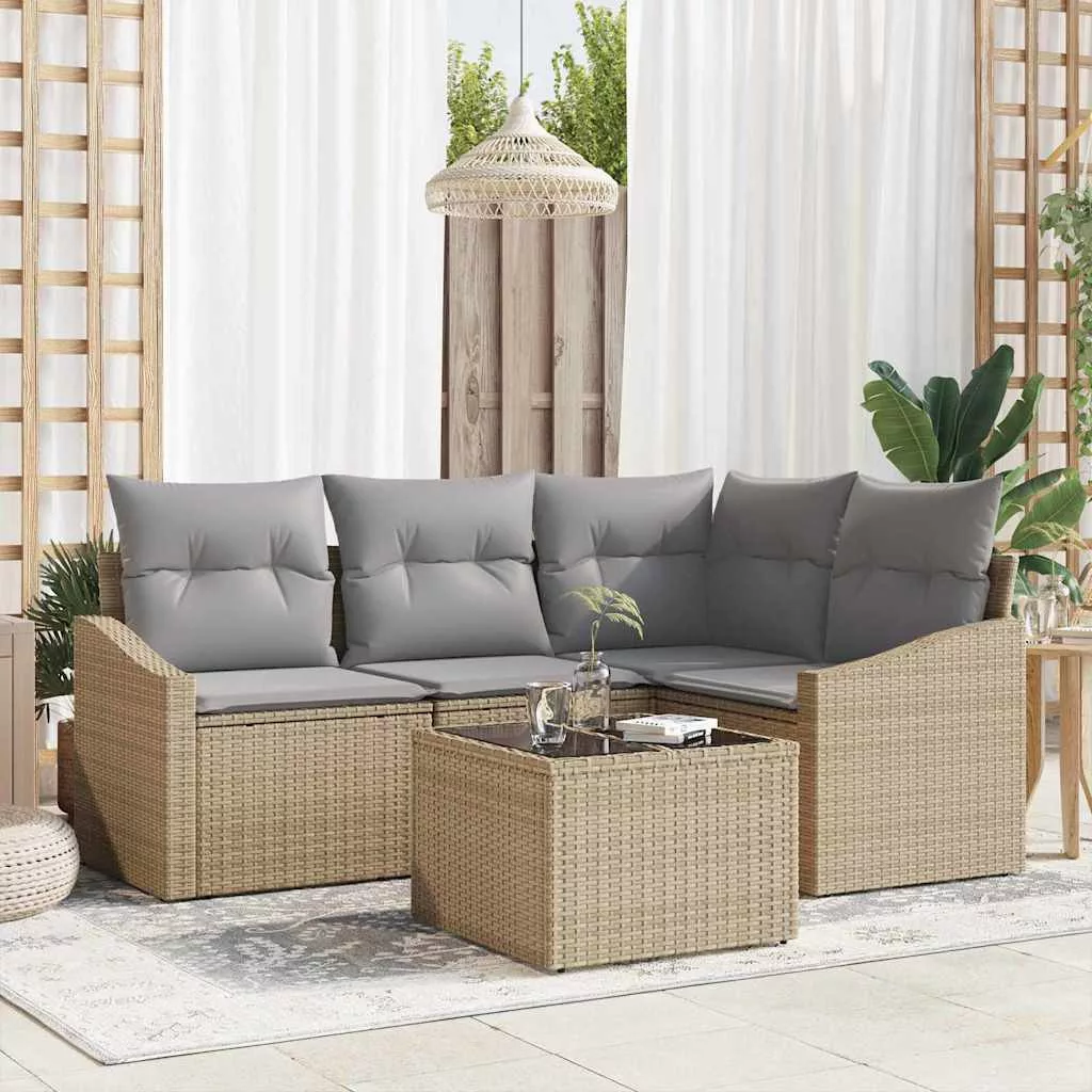 Kanapé Szett párnával 5 pcs Beige és Világosszürke polirattan