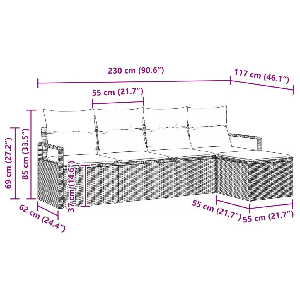 Ez a kerti kanapé szett a modern dizájnt és praktikus kültéri funkciókat ötvözi, hogy a napfényes napokat a lehető legjobban élvezhesd. Elegáns vonalai és diszkrét stílusa miatt tökéletesen beleillik buja kertekbe vagy teraszokra, hívogatva a kikapcsolódásra bármely kültéri térben. Polirattan váz: Ez a szett tartós polirattanfából készült, így ellenáll a kültéri viszontagságoknak, mint a nap vagy eső hatása. Luxus textúrája jól illeszkedik a kertek és teraszok zöldjéhez, és minimális karbantartást igényel. Rejtett tárolás: Okos tárolóhelyek találhatóak a padokban és az ottománokban. Tökéletes megoldás a párnák és kültéri kiegészítők elrejtésére, tisztán tartva a teret a baráti összejövetelekhez vagy a személyes relaxáláshoz. Könnyű és hordozható: A design kiemelten figyel a mozgathatóságra, lehetővé téve, hogy könnyen átrendezd a bútordarabokat különböző társasági eseményekhez vagy saját kívánságaidhoz. Időjárásálló kivitel: A kanapé szett UV-álló és tartós anyagokat tartalmaz, ami védi a zord időjárástól, így bármikor élvezheted a kültéri életet, anélkül, hogy aggódnod kéne a károk miatt. Könnyű karbantartás: Egyszerű karbantartási útmutatók segítenek az ápolásában. Csak fedd le, ha nem használod, hogy megvédd az időjárási hatásoktól.