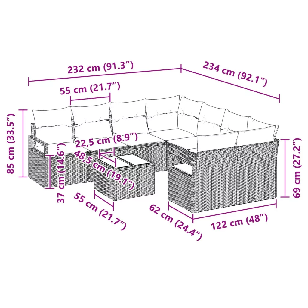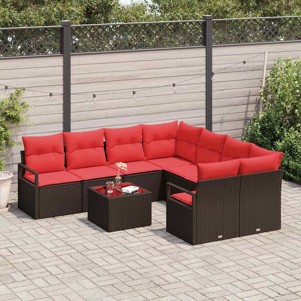 Kanapé Szett párnával 9 pcs Barna és Piros polirattan