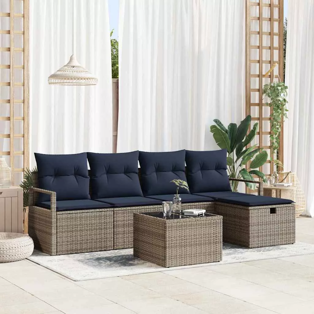 Kanapé Szett párnával Szürke és Tengerész Kék polirattan