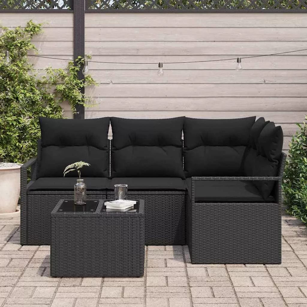 Kanapé Szett párnával tárolóval 5 pcs Fekete polirattan