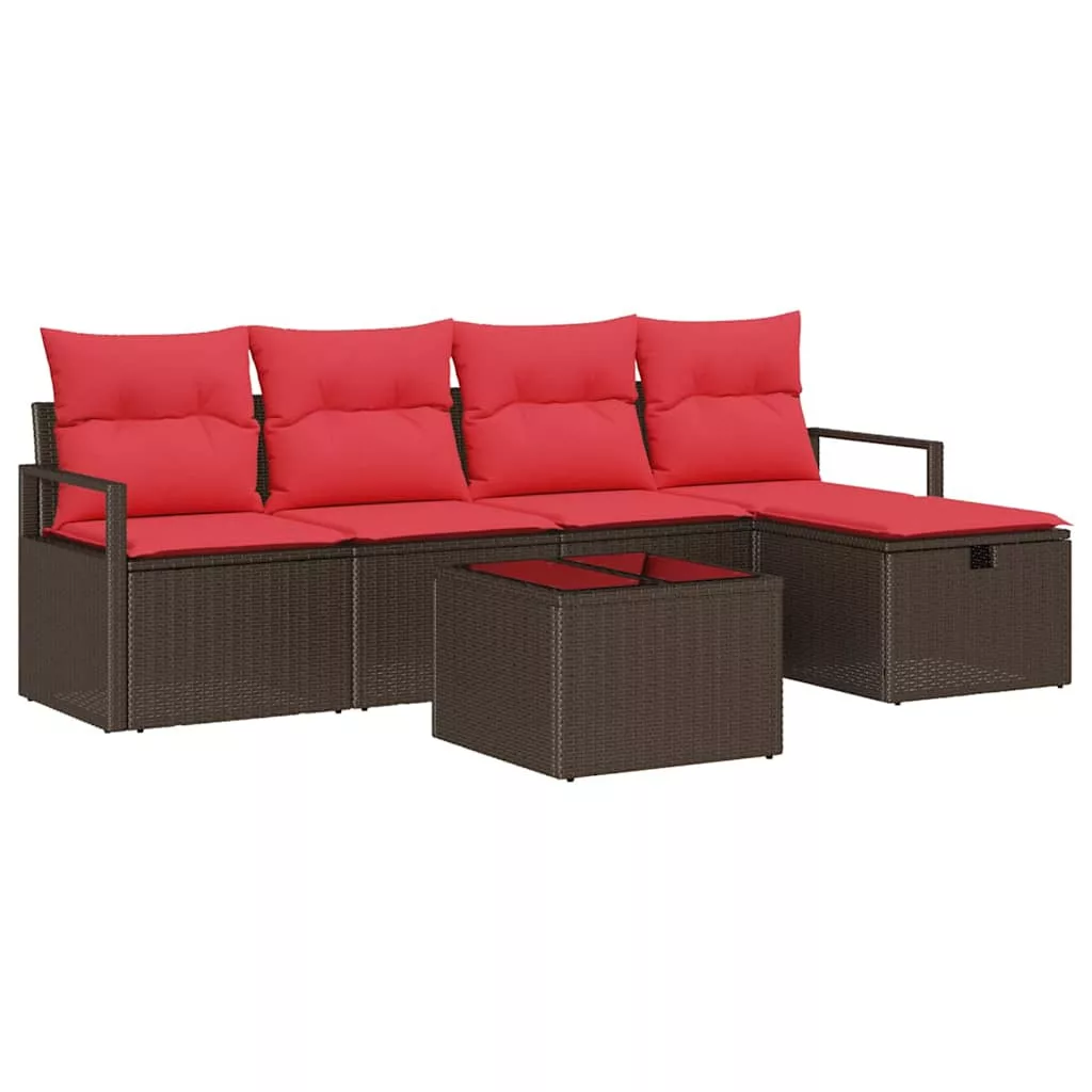 Kanapé Szett párnával tárolóval 6 pcs Barna és Piros polirattan