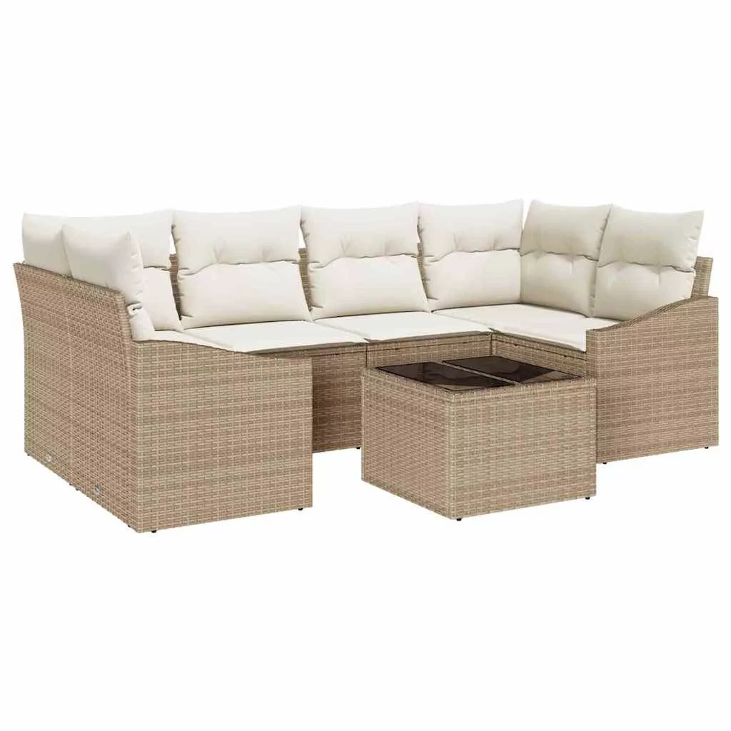 Kanapé Szett párnával tárolóval 7 pcs Beige és krém polirattan