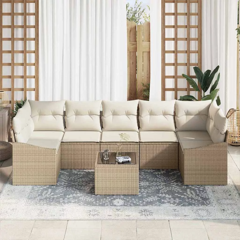 Kanapé Szett párnával tárolóval 8 pcs Beige és krém polirattan
