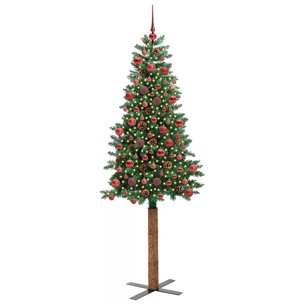 Karcsú karácsonyfa 300 LED-del Zöld 180 cm PVC és tömör fenyőfa