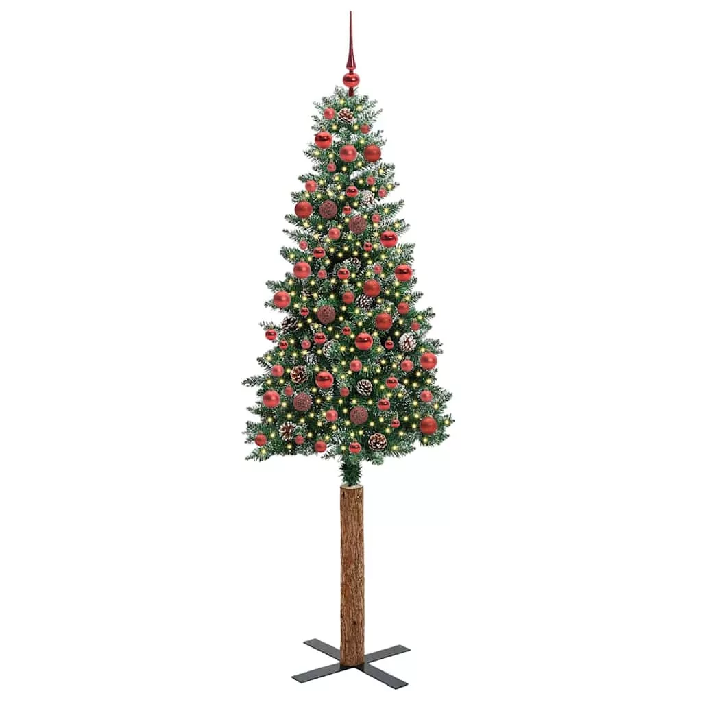 Karcsú karácsonyfa Zöld és Fehér 180 cm PVC és tömör fenyőfa