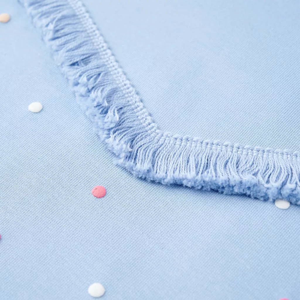 Gyerekruha-kínálatunk a megfizethető, kiváló minőségű és tartós mindennapi viseletet képviseli 1,5 és 10 év közötti gyermekek számára. Kínálatunkban kabátok, pulóverek, ingek és még sok más található változatos stílusban, méretben és színben. A piac magas minőségi színvonalát követve kiváló minőségű anyagokat és fejlett gyártási technikákat alkalmazunk. Ez a gyerekpulóver kerek nyakú, hosszú ujjú, valamint színes pöttyök és rojtok díszítik. Ez a kék pulóver 95% pamutból és 5% elasztánból készült, amely puha és kényelmes tapintású. Fontos: A képen látható mérettáblázat az 1,5-10 éves gyermekek méretét ábrázolja, lefedi a magasságot, a mellkast, a derekat és a csípőt. Könnyedén megtalálhatja gyermeke számára a megfelelő méretet.