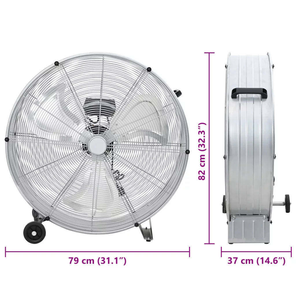 Kerek Ventilátor Kerekekkel, 3 Sebességgel, Ezüst, Φ77 cm