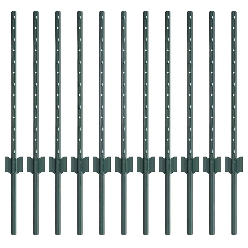 Kerítésoszlop 11 pcs Zöld 100 cm Acél