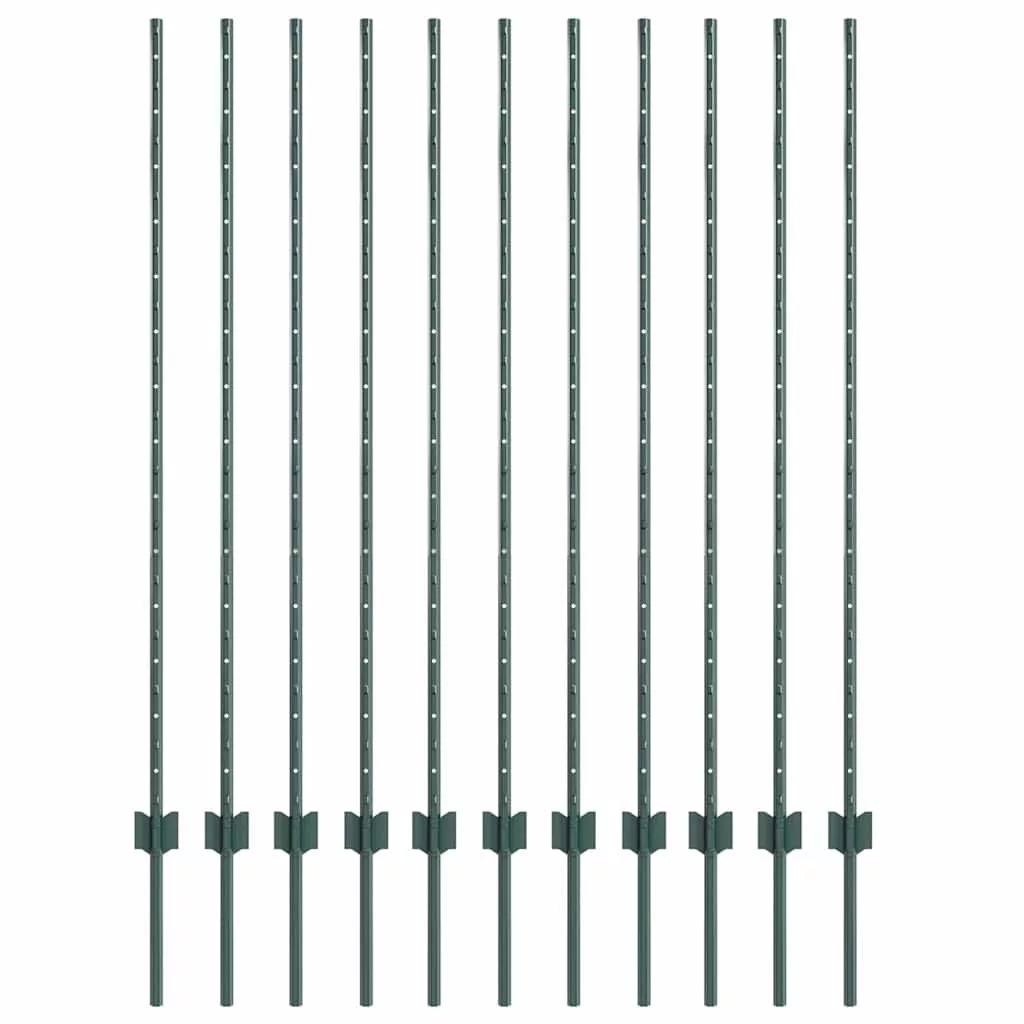 Kerítésoszlop 11 pcs Zöld 140 cm Acél