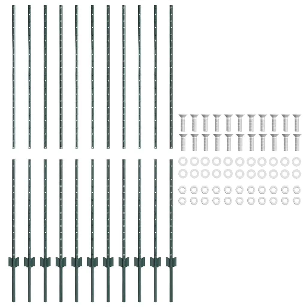 Kerítésoszlop 11 pcs Zöld 160 cm Acél