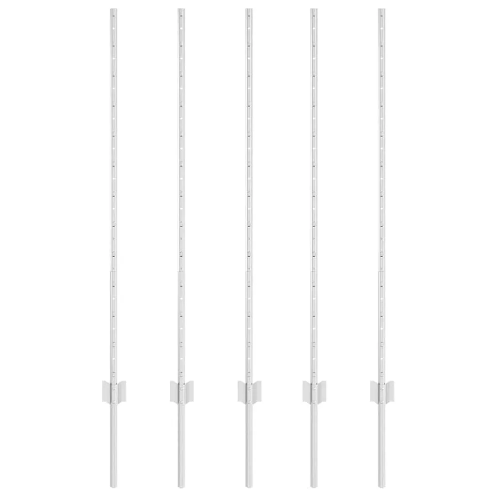 Kerítésoszlop 5 pcs Ezüst 120 cm Acél