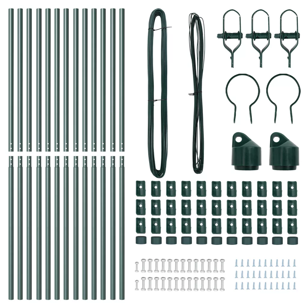 Ez a vidaXL kerítésoszlop készlet tökéletes kültéri helyekre. Erős támaszt ad nagy kerítéses munkákhoz. Ipari stílusú, élénk zöld színével nagyon jól mutat bármelyik kertben, miközben megbízható alapot ad a projektjeidhez. Tartós kivitelezés: Horganyzott acélból készült, festett felülettel a rozsdával és kopással szembeni hosszú teljesítményért. Időjárásállóság: Kültéri használatra építve, ezek az oszlopok képesek kezelni a változatos időjárást, így szilárd választás a kültéri kerítéshez. Tágas dizájn: 200 cm magas és Ø32 mm széles, ezek az oszlopok tökéletesek nagyobb kerítési beállításokhoz, így kiválóan alkalmasak nagy kertekhez. Teljes csomag: A szállítás minden szükséges elemet tartalmaz, így könnyen felállíthatod a kültéri kerítésedet. Multi-funkcionális használat: Ideális nemcsak kerítésekhez, hanem különféle kültéri projektekhez; nagyszerű a nagyobb feladatokhoz.