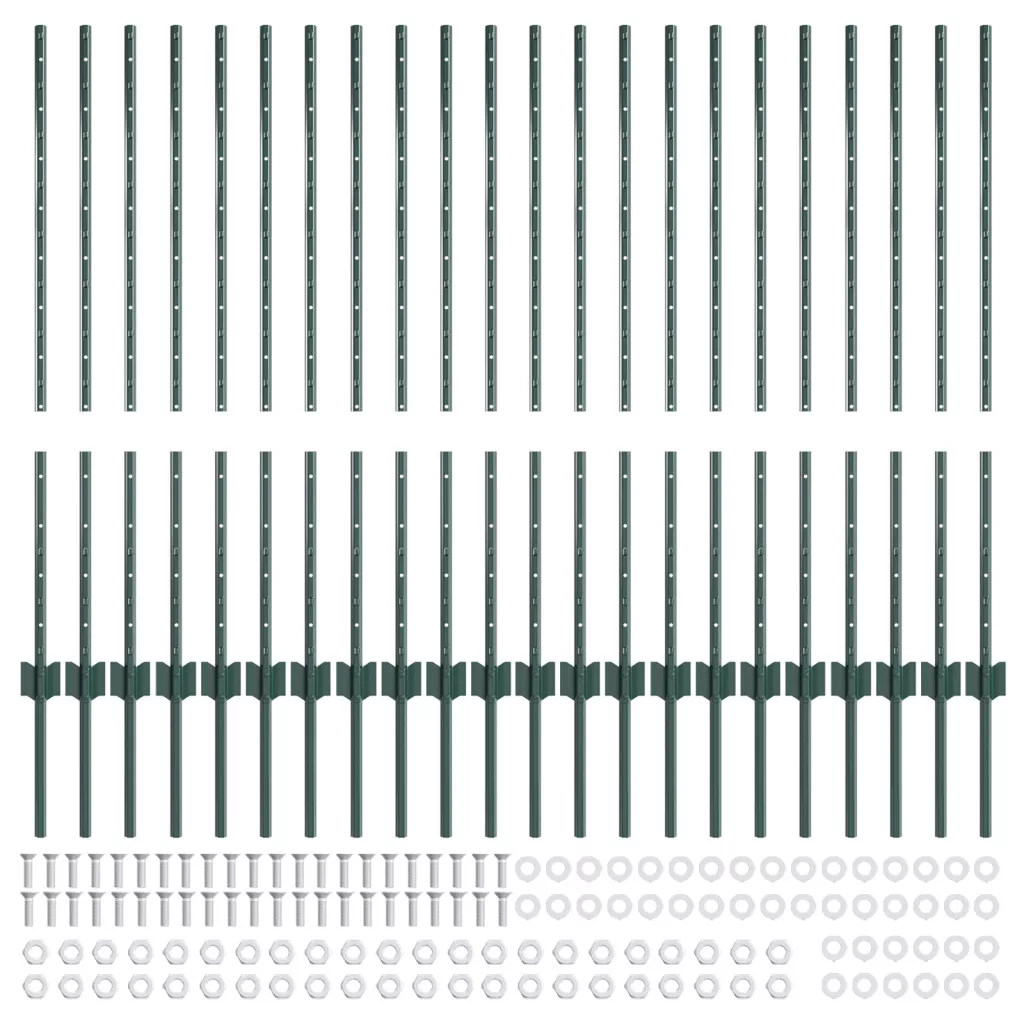Kerítésoszlopok 22 db U-Channel Zöld 140 cm Acél