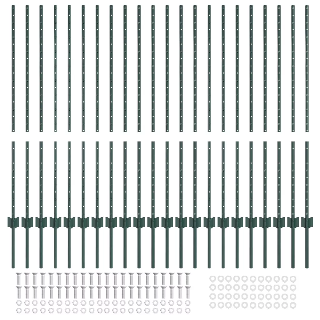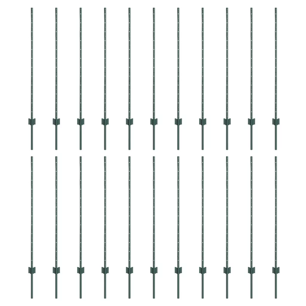 Kerítésoszlopok 22 db U-csatorna Zöld 160 cm Acél