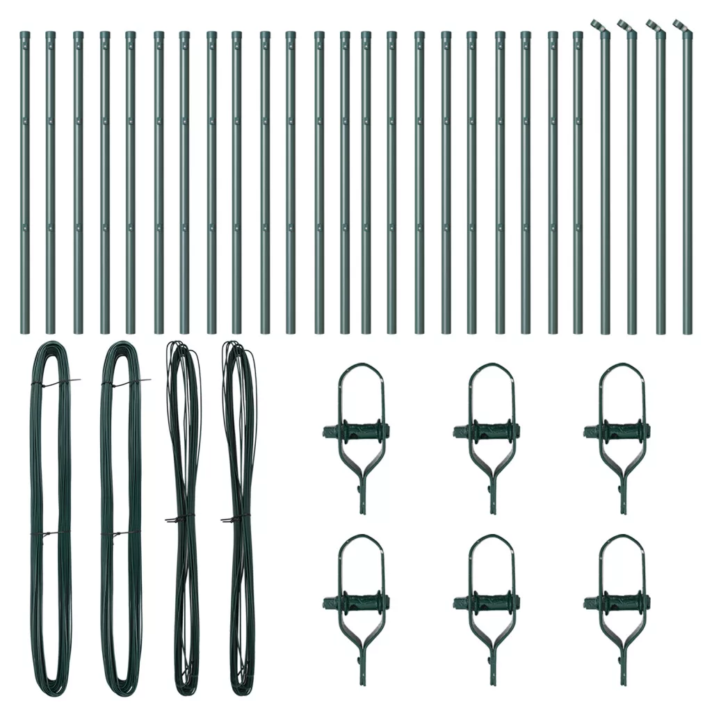 Kerítésoszlopok 26 db Zöld Ø32 mm 120 cm Horganyzott Acél