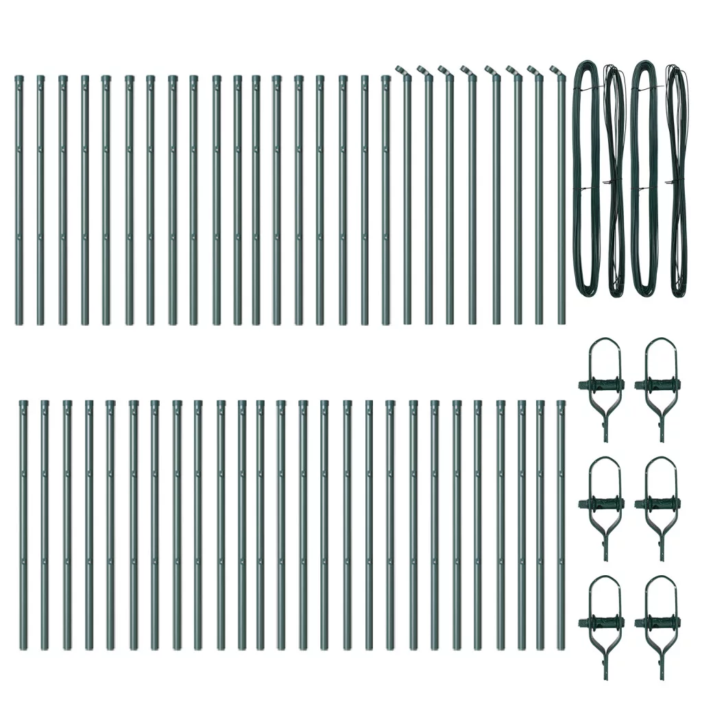 Kerítésoszlopok 52 db Zöld Ø32 mm 100 cm Horganyzott Acél