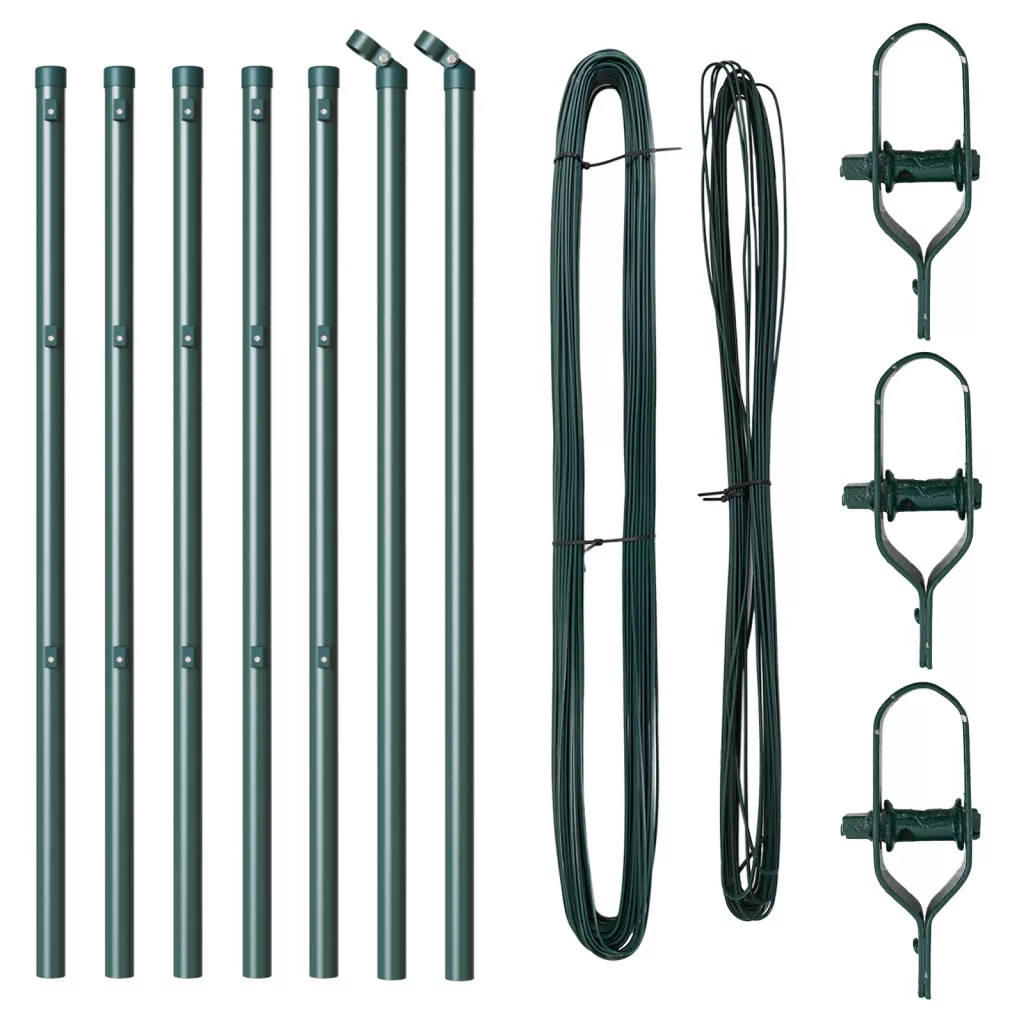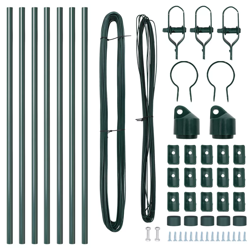 Ez a 7 darabos fém kerítésoszlop készlet tökéletes határok kialakítására vagy a kültéri területed kerítésére. Erős anyagokból készült, minden oszlop élénk zöld bevonattal rendelkezik, ami varázst ad, miközben nagyon praktikus. Ezek az oszlopok bírják az időjárást, így az esőt, a napot és a havat is kibírják anélkül, hogy elveszítenék az erejüket. Egész évben használhatod őket különféle éghajlatok mellett. Mindegyik oszlop sima és modern dizájnja javítja a kültéri esztétikádat, figyelembe véve a praktikus szükségleteid is, ami miatt a kerted igazán feldobódik. Ezek az oszlopok könnyen összeszerelhetők, minden kiegészítővel - beleértve a klipszeket és drótokat - gördülékeny telepítést biztosítva. Jó mindenféle célra, a kerti határok kiépítésétől a dekoratív kerítés felállításáig, függetlenül attól, hogy növényeket védelmezel vagy azt tárod fel, hol ér véget a területed. A 100 cm magas hengerek biztosítják a szilárd támogatást a különböző kerítési alkalmazásokhoz.