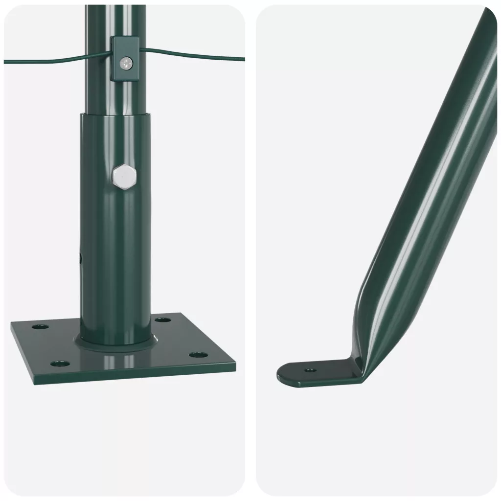 Ez a vidaXL kerítés oszlop készlet tökéletes a kültéri helyeken. Szilárd támogatást nyújt a kerítési igényeidhez. Modern kinézetével és zöld színével jól passzol különböző kertekhez, miközben erős alapot ad bármilyen projekthez. Tartós kivitel: Horganyzott acélból készült, porszórt befejezéssel, így hosszú élettartamot biztosít a rozsdával szemben. Időjárásállóság: Kültéri használatra tervezve, ezek az oszlopok bírják az időjárást, így megbízhatóak kerítéshez. Kompakt kivitel: 83.5 cm magas és Ø32 mm, ezek az oszlopok tökéletesek kerti kerítésekhez és határjelöléshez, kielégítve a különböző tájépítési igényeket. Gyors telepítés: A készlet tartalmaz 5 oszlopot, 2 sarkos oszlopot, alaplemezeket és más alapvető kellékeket a gyors és egyszerű felszereléshez. Sokoldalú használat: Nemcsak kerítésekhez, hanem más kültéri támogatói igényekhez is remek; tökéletes különböző kültéri projektekhez.