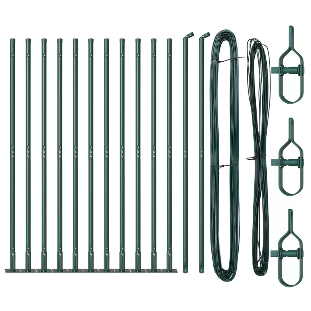 Ez a vidaXL kerítéselem készlet elengedhetetlen a kültéri területekhez, amit szilárd támogatásra terveztek a kerítési projektekhez. Az ipari megjelenéssel és zöld befejezésével ezek az oszlopok jól illeszkednek a különböző kültéri elemekhez, miközben szilárd alapot biztosítanak bármilyen feladathoz. Tartós kivitel: Horganyzott acélból készült, sima, festett felülettel, hosszú élettartamot biztosít a rozsdával és kopásokkal szemben. Időjárásálló: Kültéri használatra tervezett, ezek az oszlopok képesek ellenállni a különböző időjárási körülményeknek, megbízható lehetőséget biztosítva a kerítéshez. Kompakt dizájn: 78.5 cm magasak és 32 mm szélesek, tökéletesek kerítésekhez és határjelöléshez, különböző tájépítési igényekhez illeszkedve. Egyszerű telepítés: A teljes készlet alaplemezeket és drótkiegészítőket tartalmaz, megkönnyítve az oszlopok telepítését és a kerítés építésének megkezdését. Változatos felhasználás: Nemcsak kerítésekhez, hanem más kültéri támogatásokhoz is tökéletes; különböző kültéri projektekhez ideális.