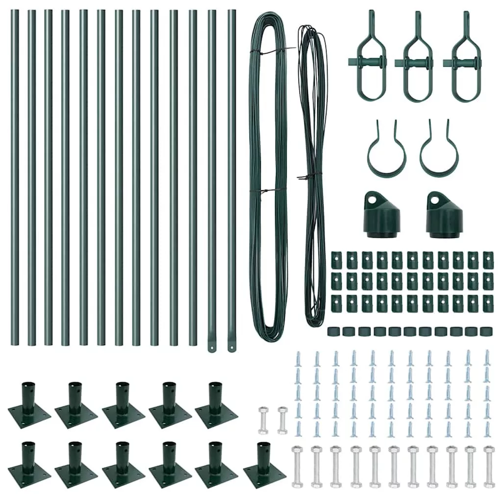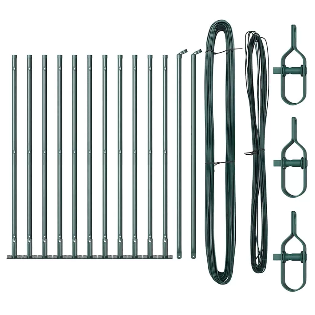 Kerítésoszlopok alaplemezekkel 13 pcs Zöld Ø32mm 70 cm Fém
