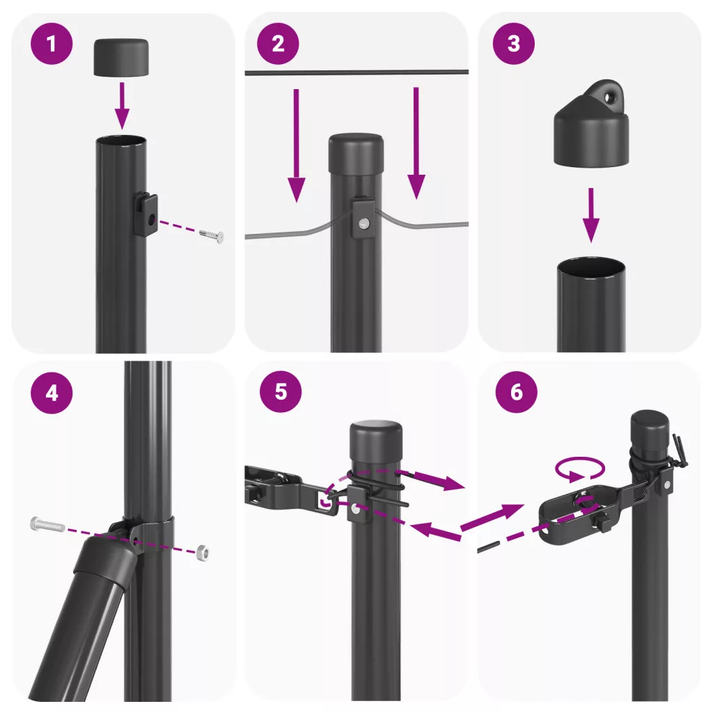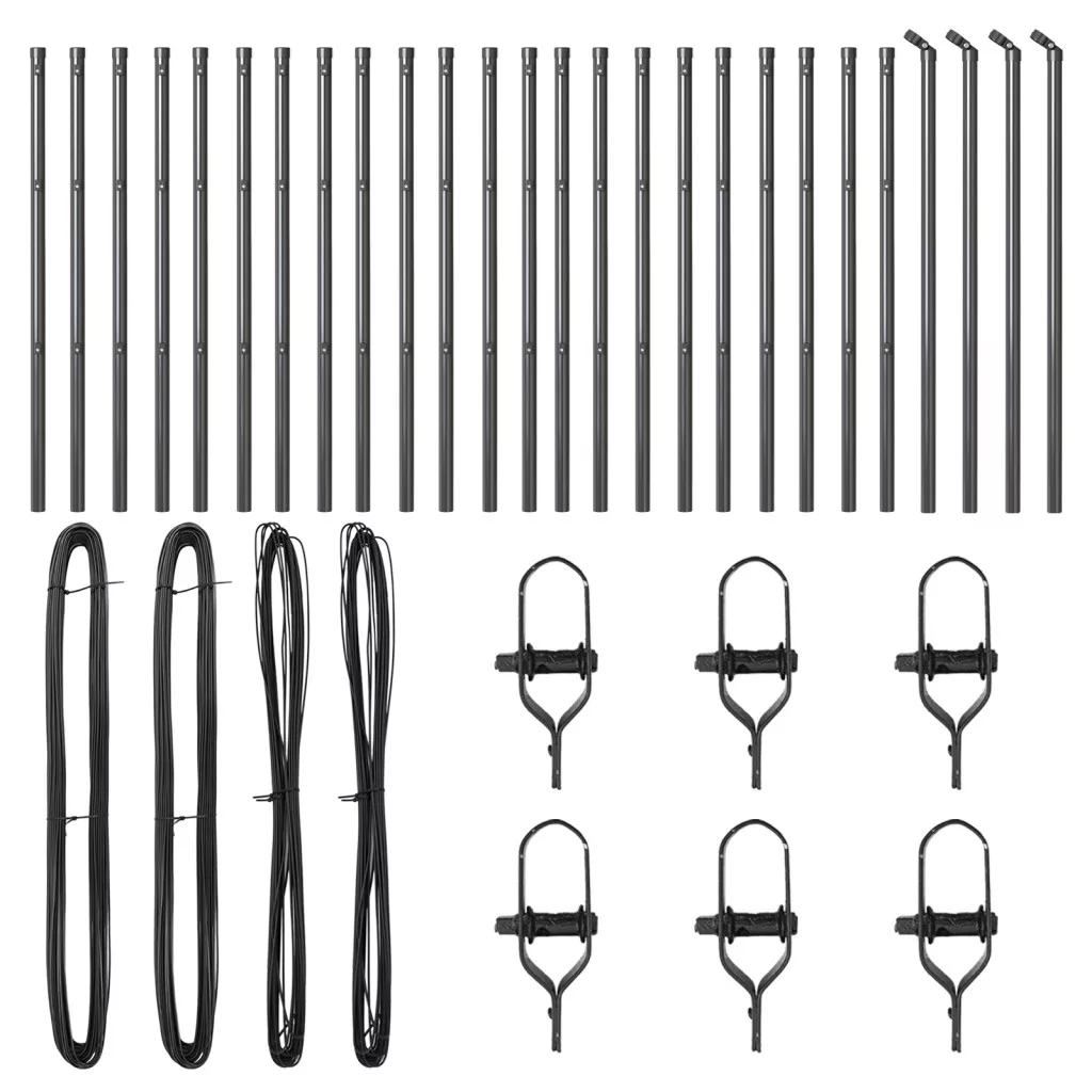 A csomag tartalma: 2 kerítésoszlop, konzolok, feszítőhevederek, drót