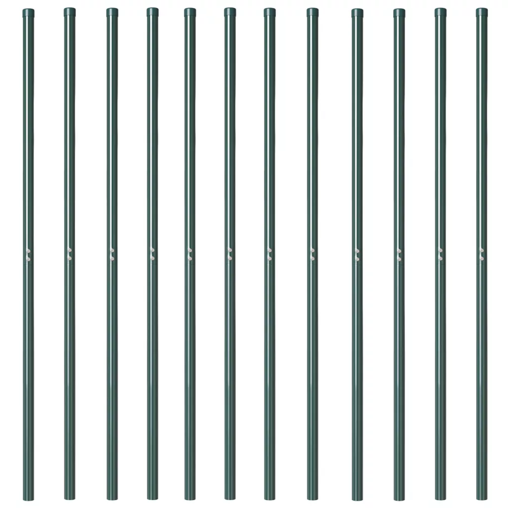 Kerítoszlopok 12 pcs Zöld 140 cm Porszórt Acél