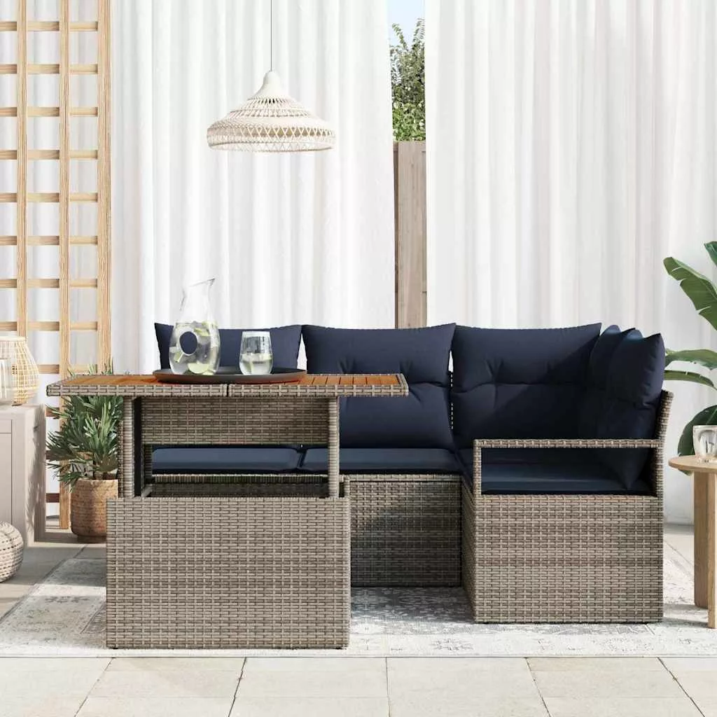 Ez a polirattan kert étkező szett a modern stílust kombinálja a sokoldalú felhasználással, így kiváló választás kültéri összejövetelekhez. Tökéletesen tervezve kertekhez és teraszokhoz, letisztult felülettel és ergonomikus szerkezettel rendelkezik, amely a kényelmet és a stílust célozza meg. Anyag: Prémium polirattan és masszív akácfa felhasználásával készült ez az kert étkező szett, amely az esztétikát az ellenállósággal egyensúlyozza. A polirattan UV-álló, így kültéri használatra megfelelő egész évben. Ezen kívül a porszórt acél keret stabil és biztonságos alapot biztosít, hatékonyan ellenállva az időjárás viszontagságainak, miközben megőrzi csinos, modern megjelenését. Belső tartozékok: A szett tartalmaz két karosszéget tároló funkcióval, egy sarokülőt, egy középső ülést és egy kertasztalt. Minden ülőelem polirattan háttámlával és négyzet alakú kartámaszokkal rendelkezik, amelyek fokozzák az ergonómiai kényelmet. A felületi anyag tömör akácfából készült, természetes eleganciát adva kertednek vagy teraszodnak. Funkciók / Design: Moduláris képessége lehetővé teszi a konfigurálást, alkalmazkodva a különböző térbeli követelményekhez és alkalmakhoz. Az állítható lábak praktikus magasságpontosítást kínálnak, ami biztosítja a stabilitást egyenetlen felületeken. A manuális beállítási mechanizmus rugalmasságot biztosít szerszámok vagy áram nélkül. Ajánlott felhasználás: Ideális kertipartykhoz, családi vacsorákhoz vagy laza kávézásokhoz, ez a kültéri szett tökéletesen fokozza a pihenés pillanatait egy teraszon. Minimalista modern dizájnja miatt különböző dekorokkal illeszkedik, funkcionális és stílusos megoldásokat kínálva nyári és tavaszi környezetekhez. Ápolás és karbantartás: A szett védelme érdekében vízálló huzatot használj, amikor nem használod, hogy megőrizd makulátlan megjelenését. A levehető ülőpárnák megkönnyítik a tisztítást, és a huzat használata biztosítja, hogy a bútorok védve maradjanak a zord időjárási viszonyoktól, prolongálva ezzel tartósságát.