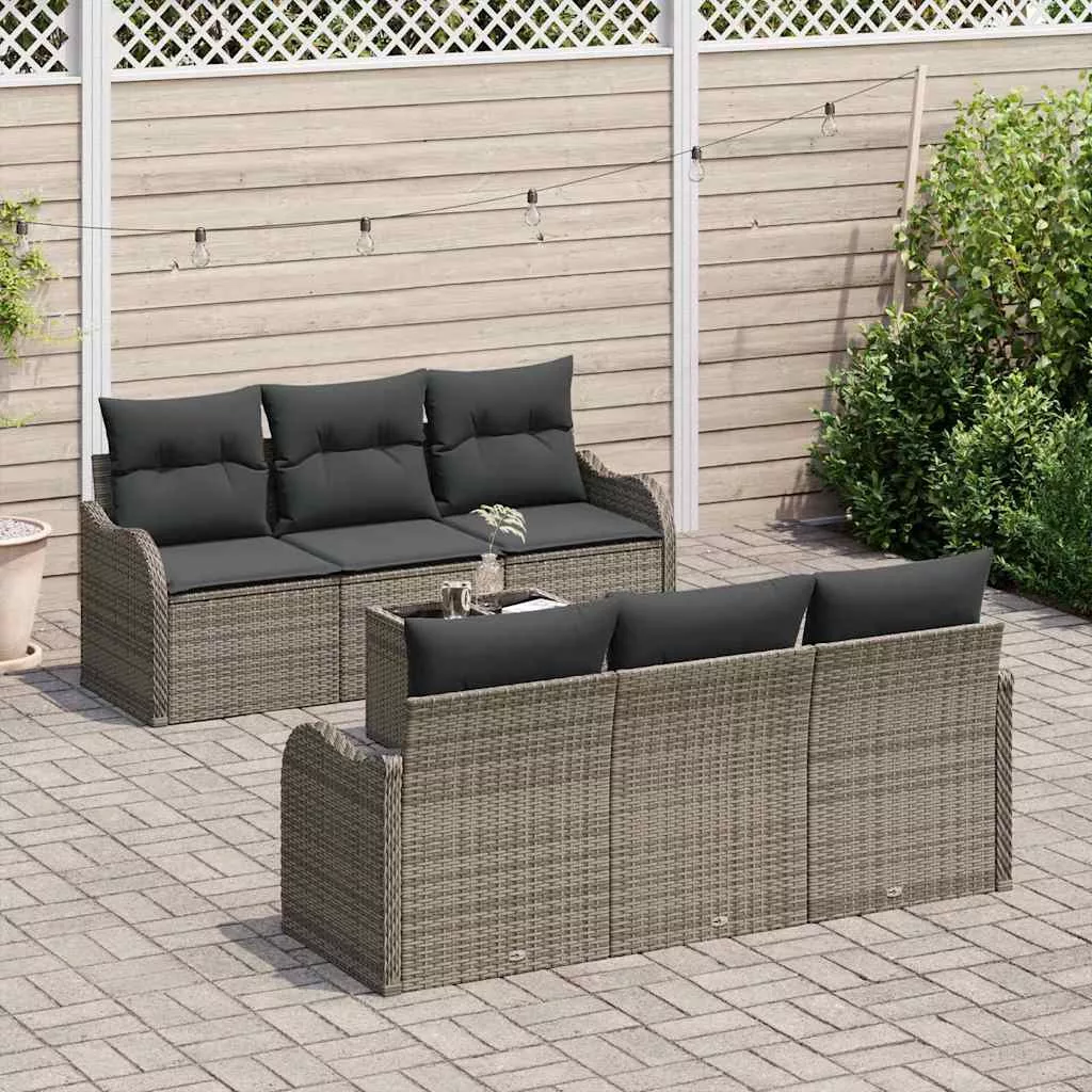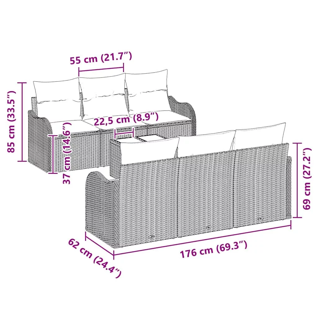 Kerti Kanapé Szett 7 pcs Szürke 55 x 55 x 37 cm Poli rattan