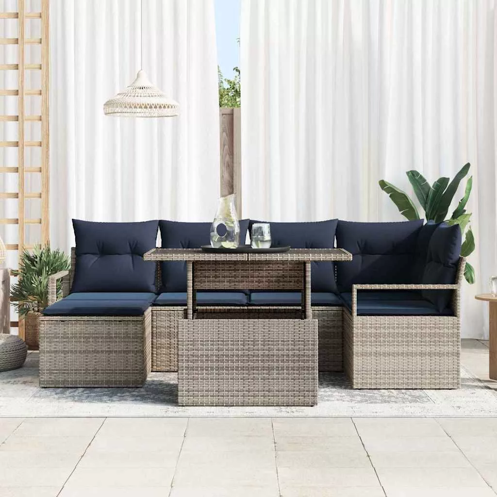 Kerti Kanapé Szett 7 pcs Szürke és sötétkék Poli rattan