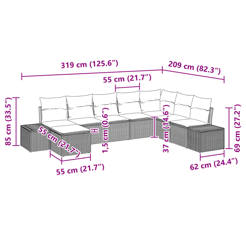 Kerti Kanapé Szett 8 pcs Bézs 319 x 209 x 85 cm PE rattan