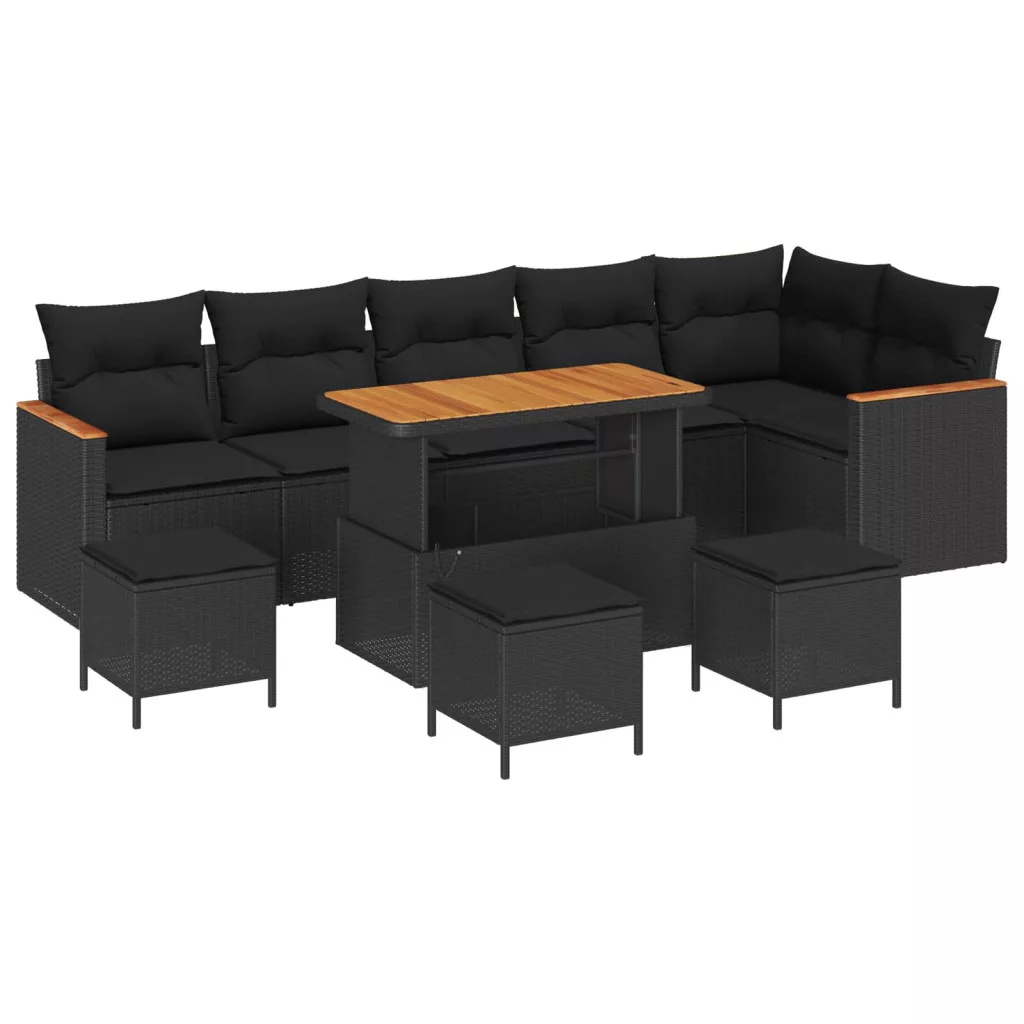 Kerti Kanapé Szett párnával 10 pcs Fekete Poli rattan