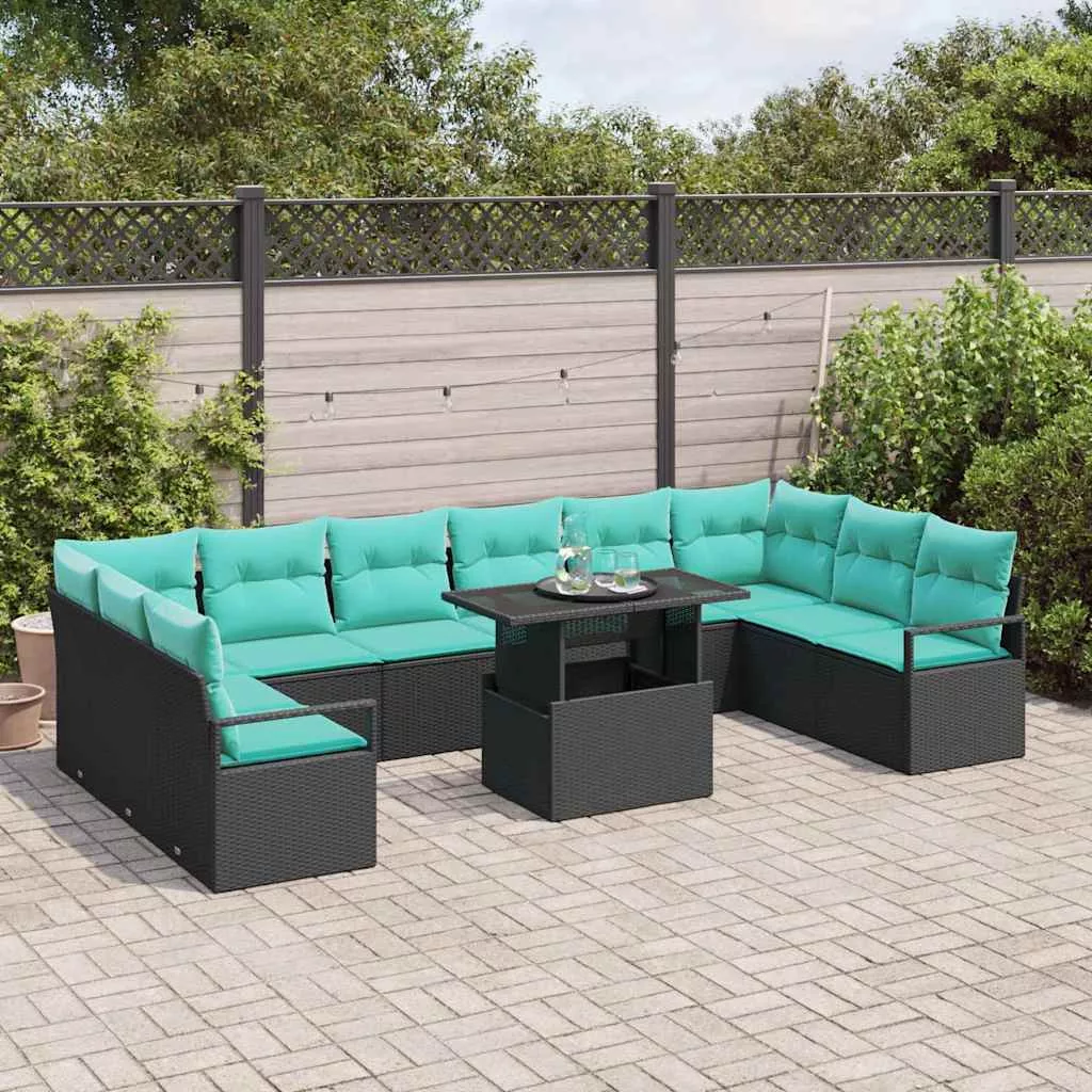 Kerti Kanapé Szett párnával 11 pcs Fekete és kék polirattan